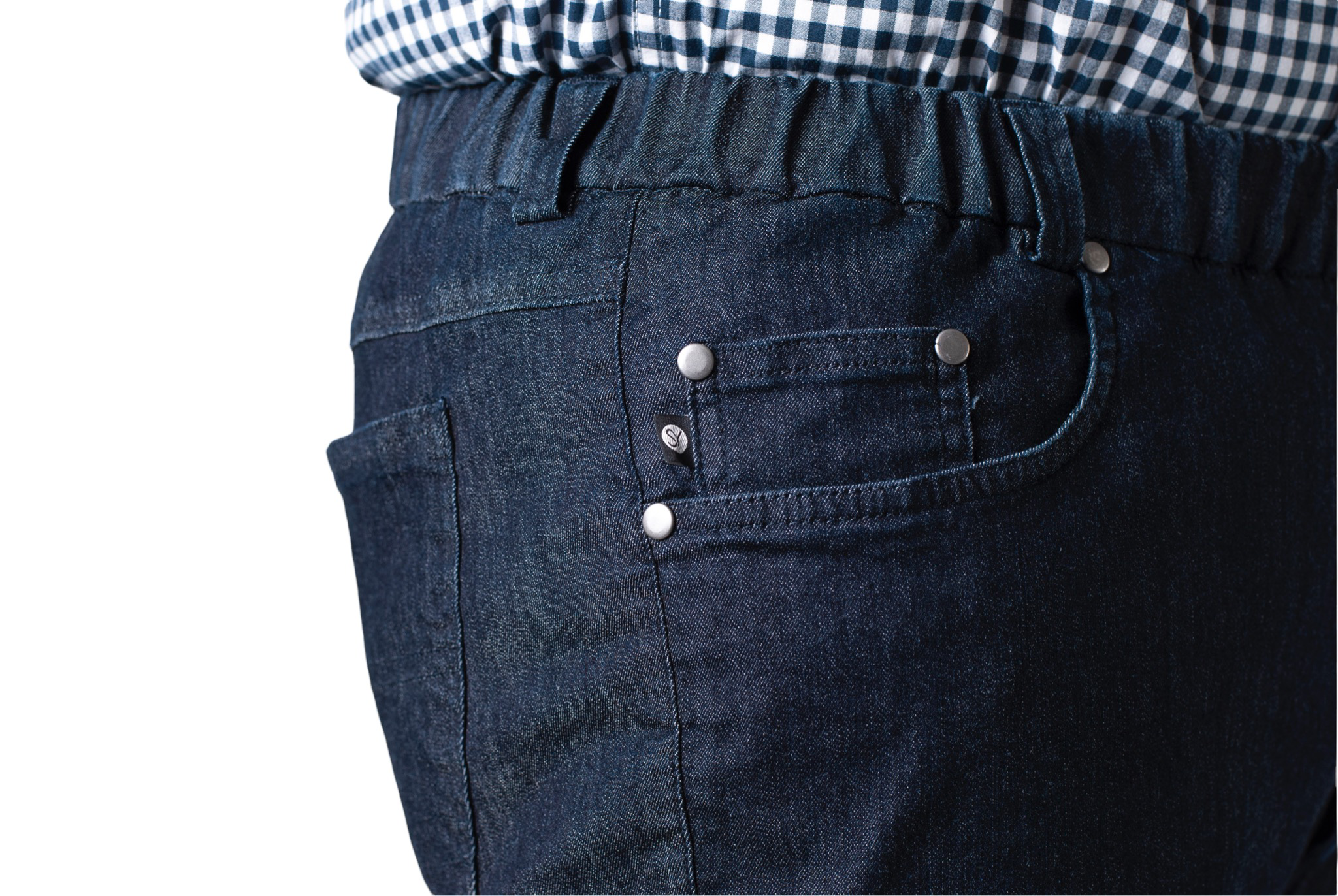 RFashionable 5 pocket trousers in soft jeans with elastic waistband, button and zipper. The pants can be put on without opening the button and zipper, making this model ideal for people with fine motor limitations or for one-handed use. Thanks to the button and zipper, going to the toilet is easy.