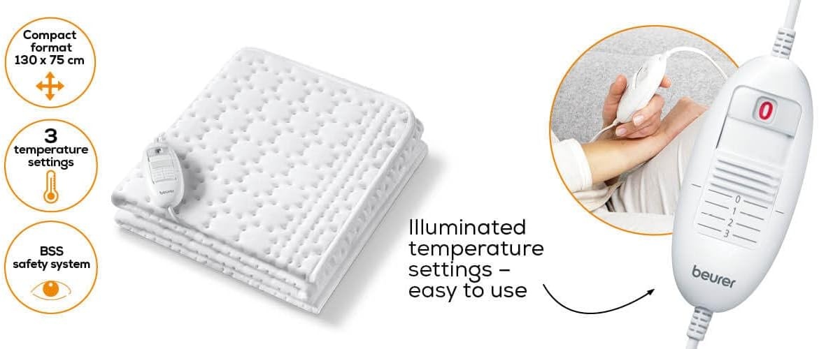 Use the illuminated hand switch to choose from 3 temperature levels. Place the heating pad on a standard single mattress, avoiding the head section. Do not use at high temperatures for a long time to prevent overheating. Remove the switch for hand washing up to 30 °C.
