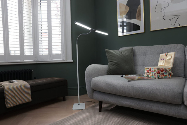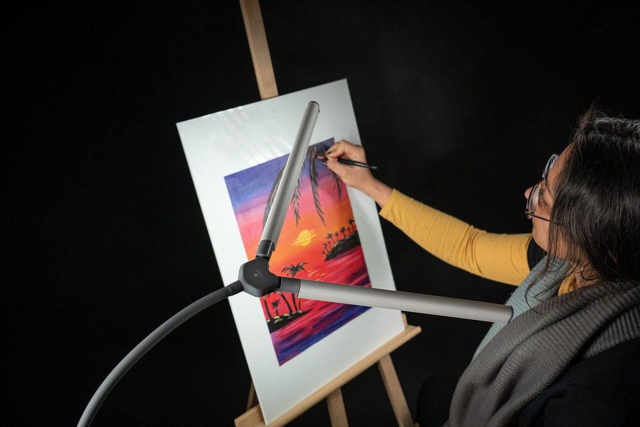 Double your light and eliminate shadows with the DuoPro floor lamp. Whether you're sewing, crafting, painting or reading, enjoy fantastic light quality and precise colour adjustment thanks to DuoPro's 56 high-quality LEDs. The brightness of each lampshade can be adjusted independently of the others with the convenient touch dimmer. You can also direct each lampshade the way you want so you can eliminate annoying shadows. The elegant design ensures that the Daylight DuoPro floor lamp fits into any interior.