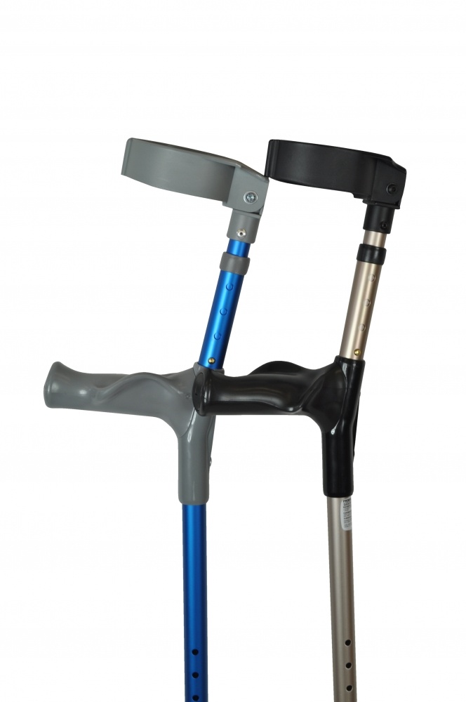These forearm crutches have a comfortable anatomical plastic grip. The crutches provide support for the palm of the hand and distribute the pressure. The crutch and the armrest can be adjusted separately in height.