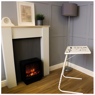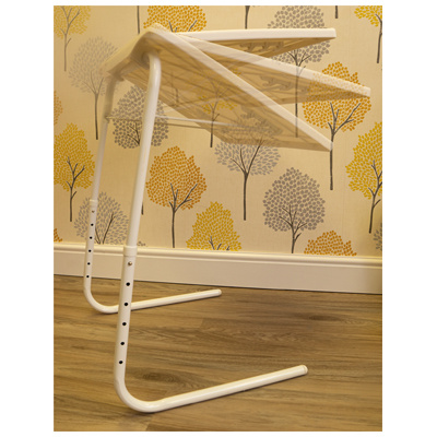 A foldable, multi-functional table that is ideal for general use in and around the house (such as doing puzzles, reading, playing board games, drawing, etc.).