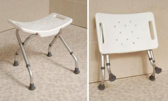 Handy lightweight shower chair that is foldable. This makes it easy to store or take with you on a trip. Made of aluminum with plastic seat. Equipped with 2 handles for better stability and drainage holes.
