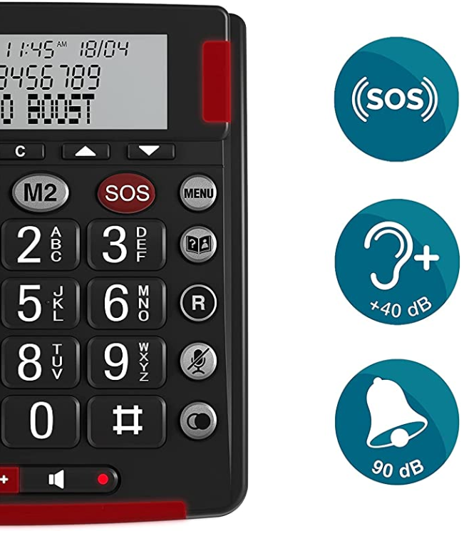 Discover the ideal phone for the hearing impaired and seniors, specially designed to meet their specific needs. This landline telephone is equipped with speech amplification and an extra loud ringer , so conversations and calls can be heard effortlessly . With large buttons and useful features, this phone is extremely easy to use and suitable for anyone looking for simplicity and convenience .