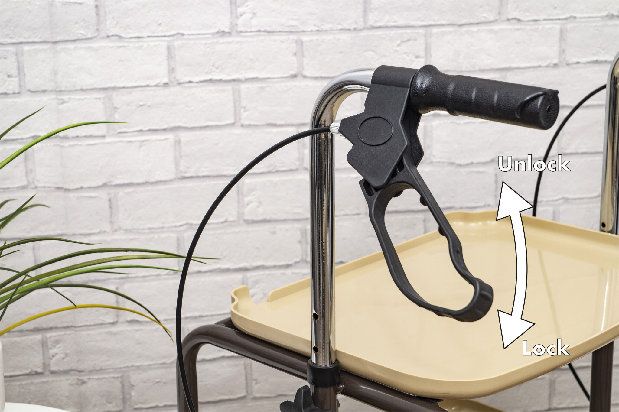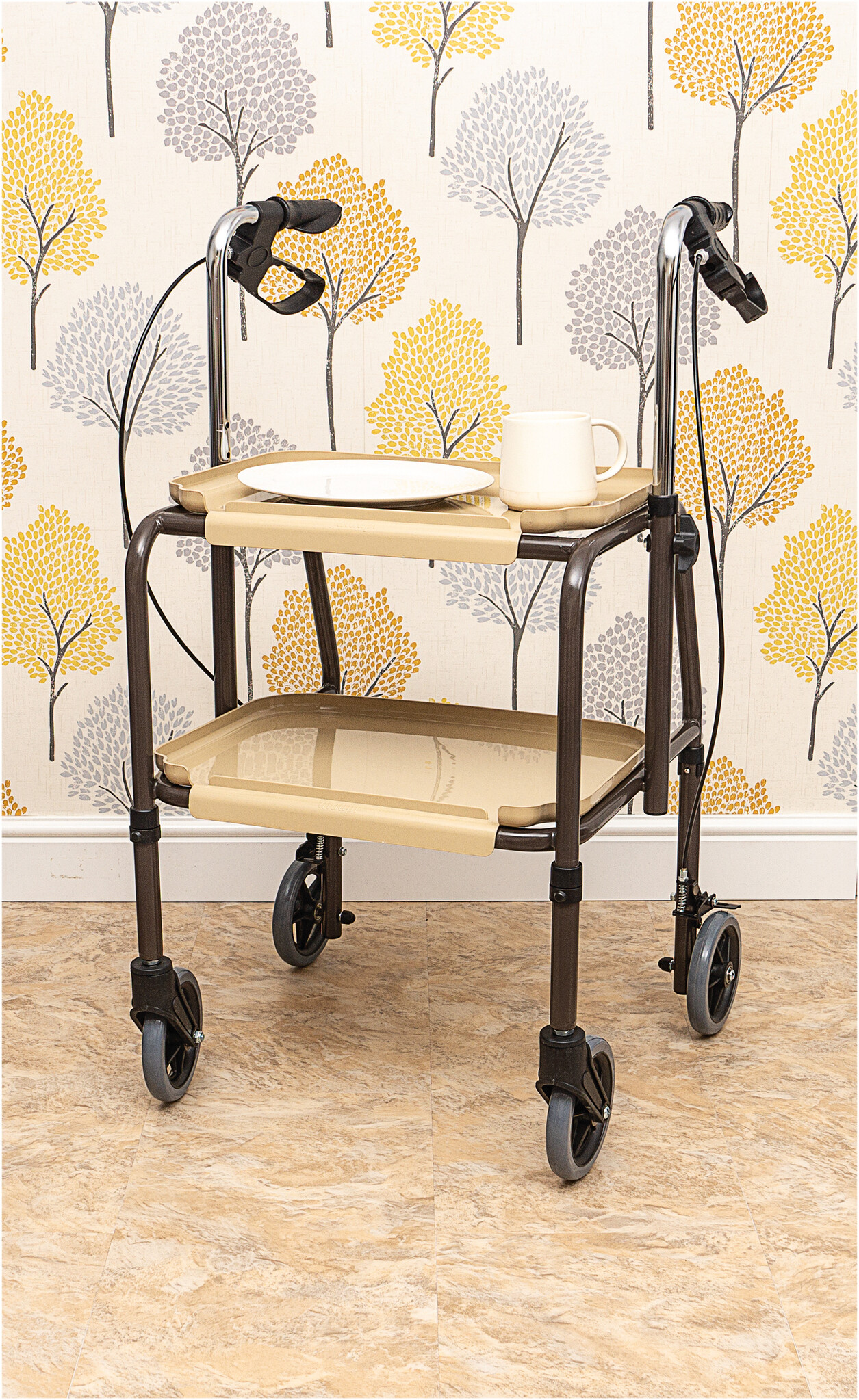 The ideal trolley for moving meals and other items around the home. The Strolley Trolley is height adjustable and the unique patented trays easily click on and off for cleaning. This new Strolley Trolley has the added benefit of hand brakes for added peace of mind for the user. The materials used are highly durable making it a great value product for both the prescriber and user. The wheels are made from polypropylene and are amazingly resistant to damage. They also feature a patented wheel guard to reduce trapped hair and fibres. Supplied flat packed.