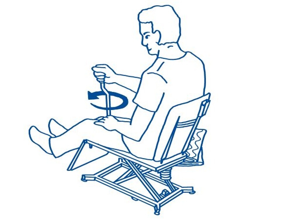 This uprighting aid is always ready for use. It is operated manually using a lever. The highest position of the Pegasus corresponds to the height of a wheelchair.