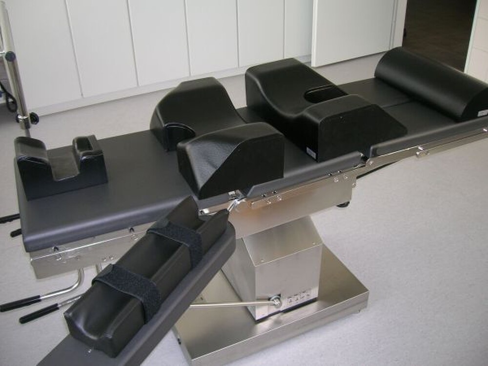 The pelvic cushion also has a recess at the pelvis. However, it slopes downwards at an angle of 45° to relieve the groin area. At the bottom, this cushion also has a recess to relieve the genitals. Made of hard foam, free from material fatigue. The version with waterproof PU coating is provided with a visco-elastic layer and with rounded edges, which minimizes the risk of pressure damage. This pelvic cushion combined with the thorax cushion makes it possible to position the body optimally and to adapt it to the body size, so that abdominal breathing is not disturbed.