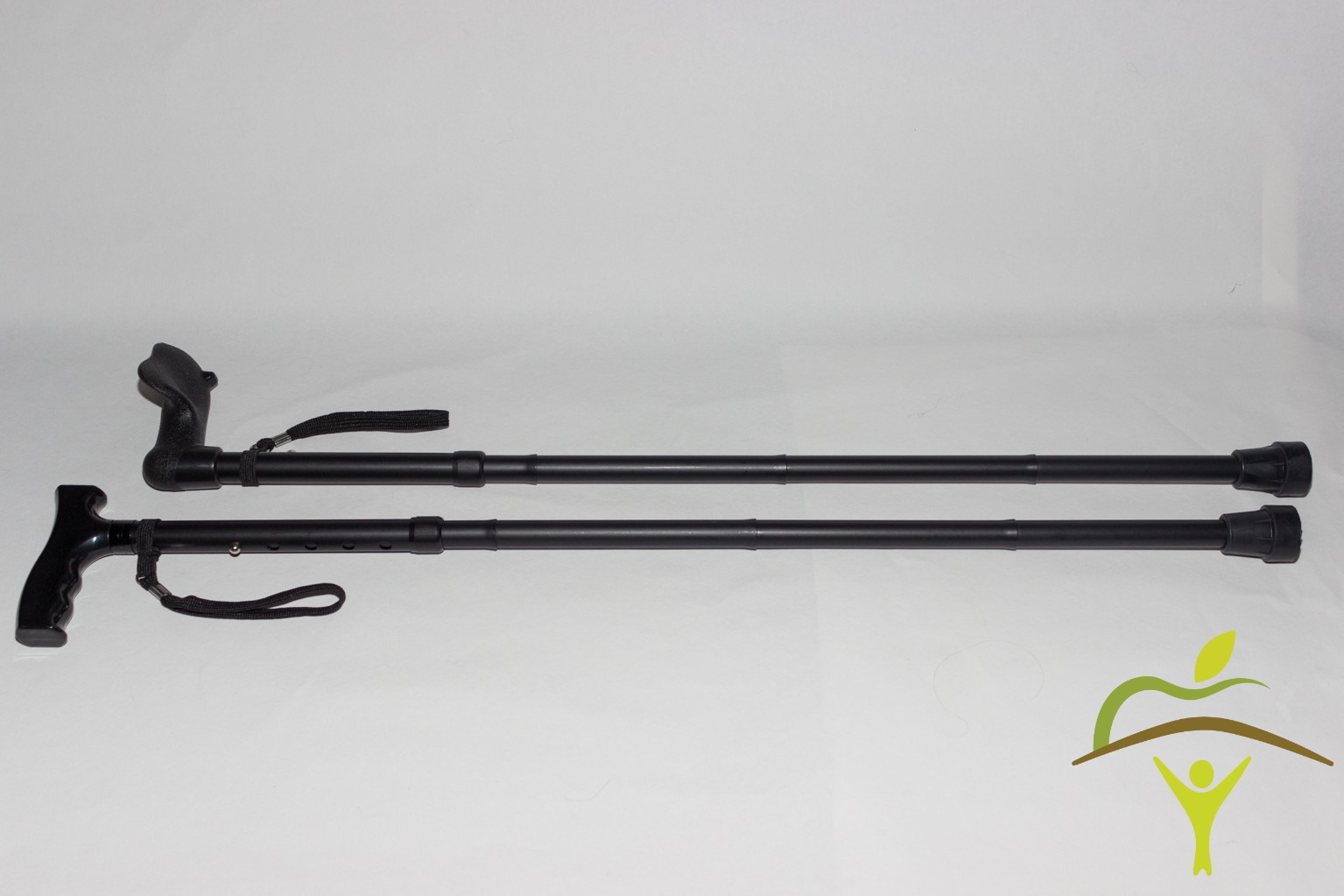 Foldable, lightweight walking stick with anatomical handle and clip to keep walking stick together.
