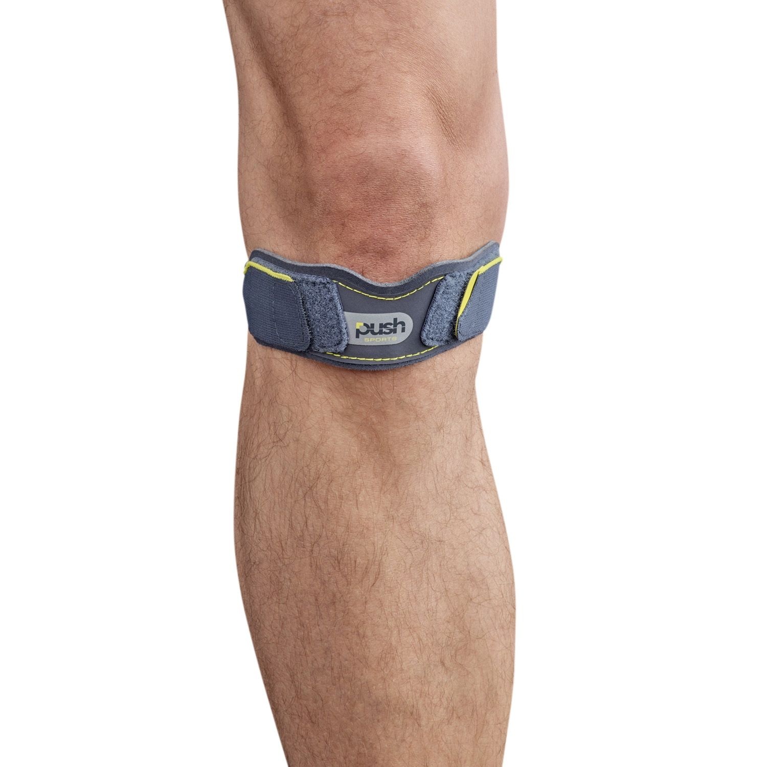 Pain complaints around the kneecap or at the attachment of the patellar tendon that arise from gradual overload are reduced with the Push Sports Patellar Brace. The resilient pad applies pressure to the patellar tendon and effectively supports the kneecap. The patellar brace presses on the patellar tendon directly under the patella, creating a slight tilt and relieving the cartilage at the back of the patella. The brace provides building pressure on the patellar tendon with every step, which provides a good dosage of pressure. The degree of pressure can be adjusted by the user because the belt can be tensioned according to his or her own needs. The Push Sports Patellar Brace helps you exercise pain-free again. INDICATIONS