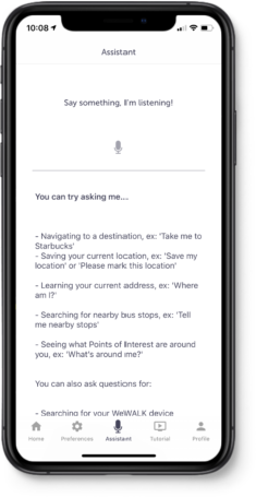 - WeWALK has its own voice assistant and is getting smarter all the time. Just say it and you're there.