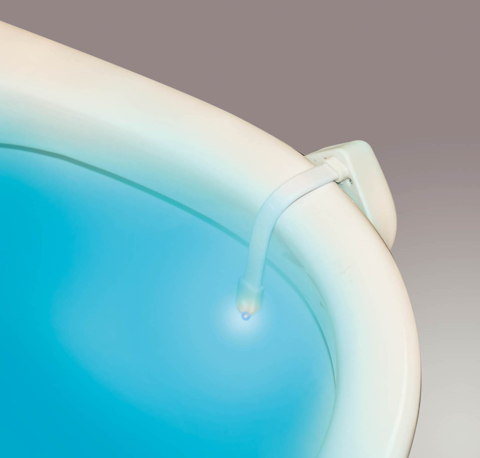 The motion-detecting LED light is clamped over the toilet bowl and detects movement from a distance of 3 meters. The light automatically cycles through 8 colors or you can select your favorite! The lamp is powered by 3 x AAA batteries (not included) and remains on for 1 minute after motion is detected (in low light). Ideal for toilet training younger children.