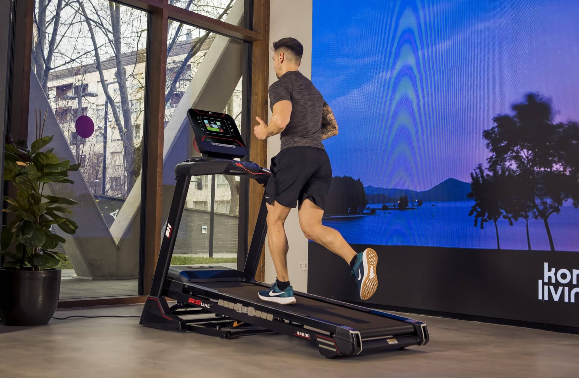 The RS800 treadmill from the BH Fitnesss series incorporates the latest technological improvements on the market. In addition to being specially designed to take full advantage of the connectivity options with the SmartFocus system, the treadmill also offers the latest in comfort and performance: a 3.5 hp motor that reaches a speed of 20 km/h, incline among other things.