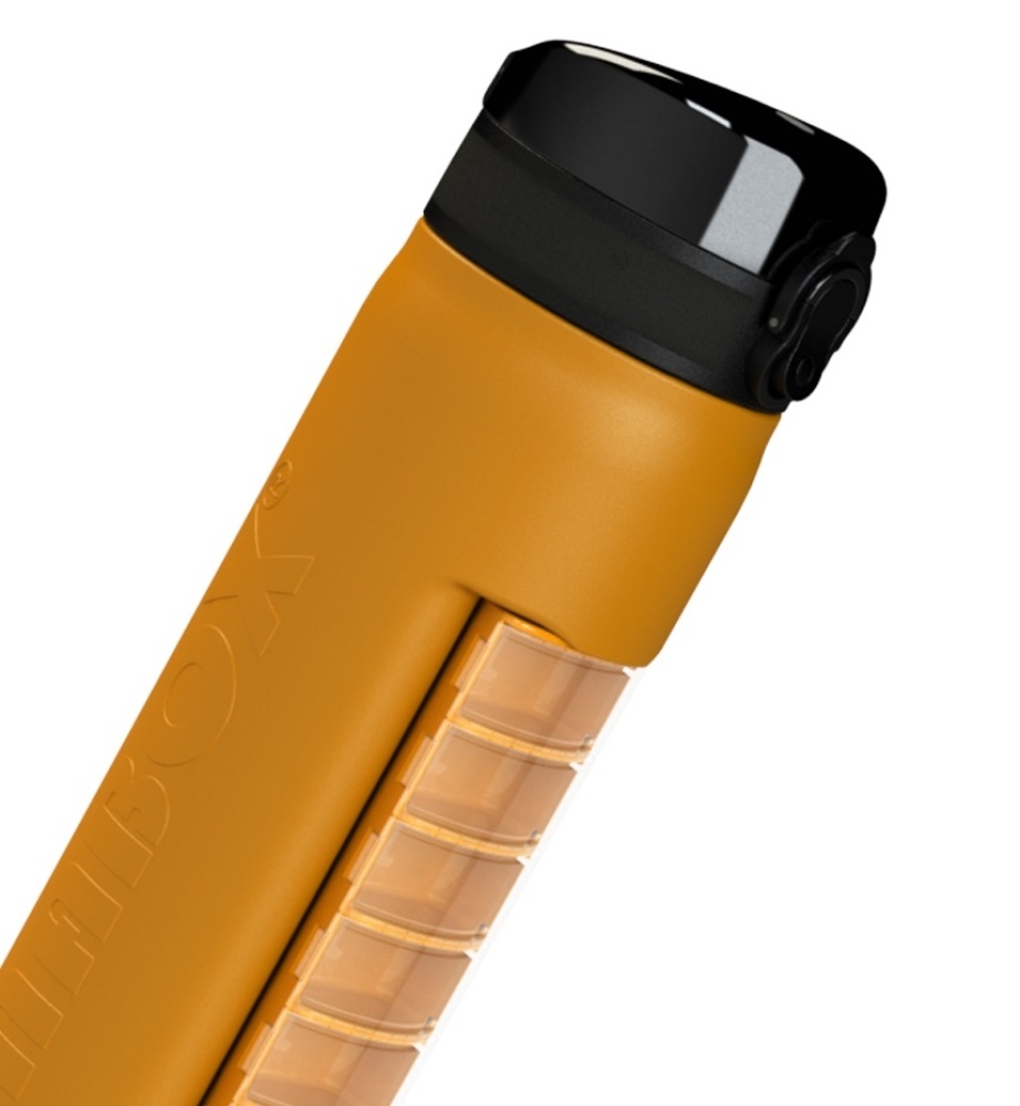 Drinking bottle with integrated Anabox® pill box with 7 compartments. This way you always have your medication and liquid at hand. The pill box is easily removable from the bottle.