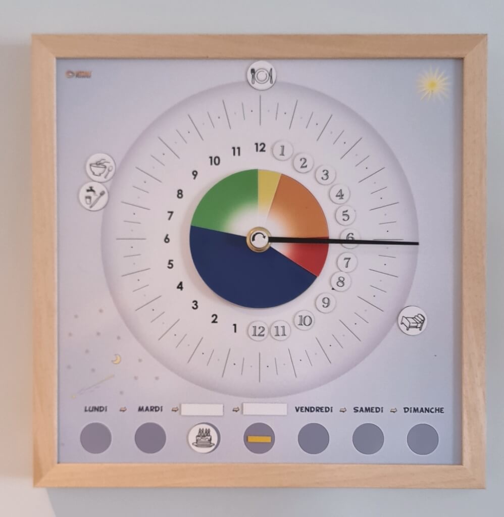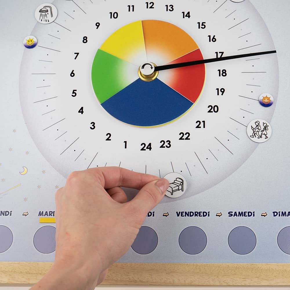 Horloge de 24 heures avec un horaire quotidien variable pour les routines et rythmes quotidiens importants.