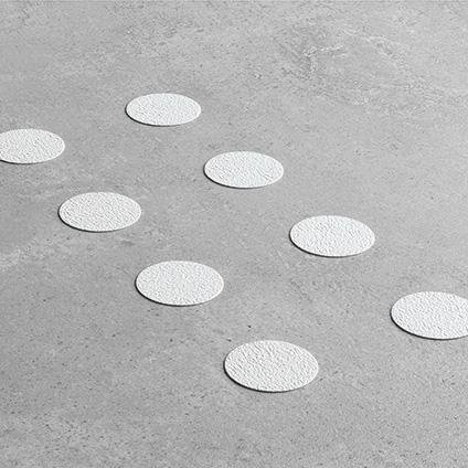Bandes/cercles autocollants en vinyle/caoutchouc doux au toucher. Facile à nettoyer. Disponible en blanc ou transparent.