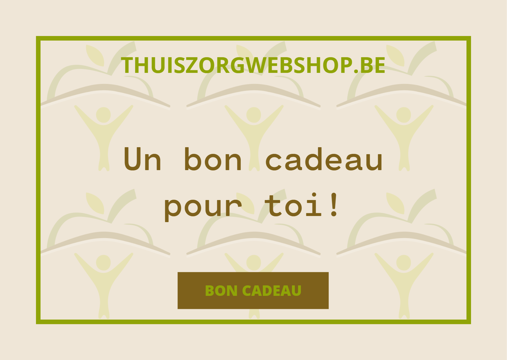 Le chèque-cadeau ThuiszorgWebshop est le cadeau idéal pour ceux qui souhaitent choisir eux-mêmes leurs fournitures d'aide à domicile. Avec ce chèque-cadeau, vous offrez à votre proche la liberté de choisir l'accessoire qui correspond parfaitement à ses besoins et à ses préférences.