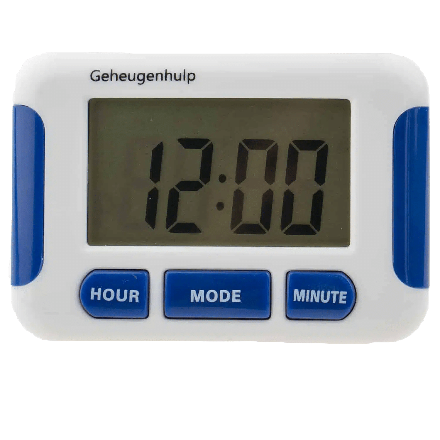 De plus, cette alarme dispose d'un aimant au dos pour la fixer, par exemple, au réfrigérateur, d'un crochet pour accrocher l'alarme et d'un support pour placer l'alarme.