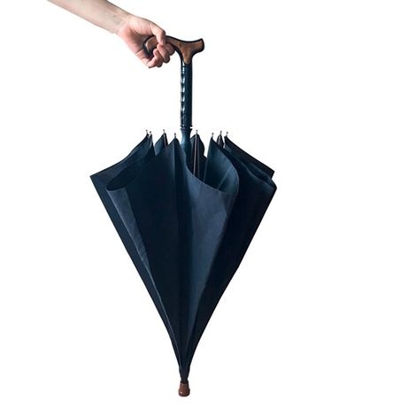 Combinaison originale d'une canne robuste et d'un parapluie de haute qualité. Equipé d'un beau manche en bois massif et d'un capuchon en caoutchouc.
