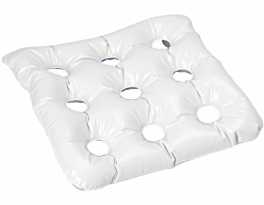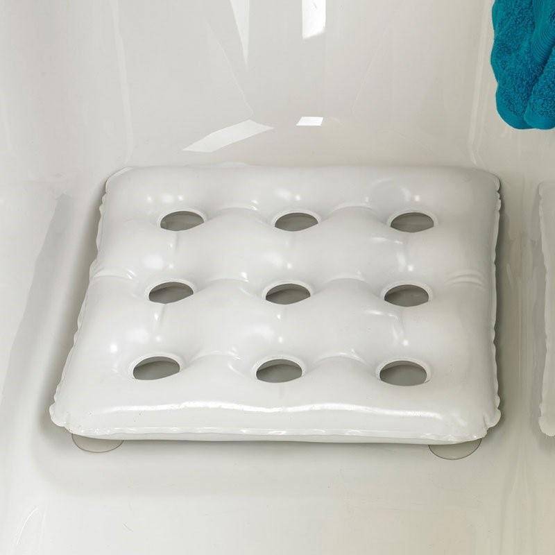Ce coussin de bain gonflable carré de 45,5 cm est maintenu fermement grâce à 4 ventouses.
