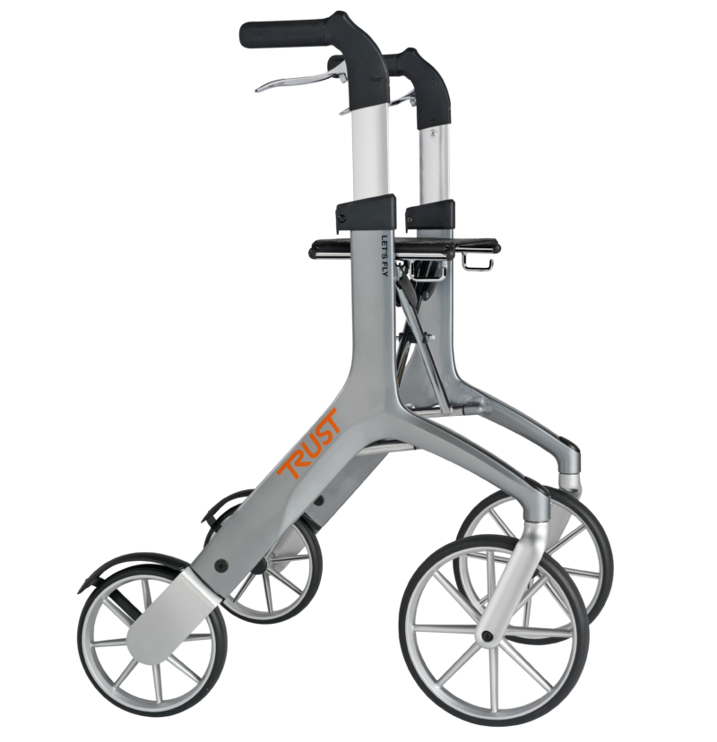 Les grandes roues avant du déambulateur Let's Fly vous permettent de franchir confortablement les trottoirs . Les roues arrière ont une suspension intégrée , ce qui augmente encore le confort de ce déambulateur. Cela vous permet de marcher dehors en douceur avec ce déambulateur. Cependant, vous pouvez également utiliser ce déambulateur d'extérieur Let's Fly dans et autour de la maison sans aucun problème. Comme les câbles de frein sont soigneusement dissimulés dans le cadre, vous ne pouvez pas vous coincer dans quoi que ce soit à l'intérieur.