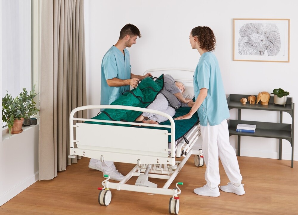 L'ensemble Immedia 4WayGlide couvre l'ensemble du matelas et constitue un système complet au lit. Utilisez cet ensemble pour tourner, (re)positionner et alterner les positions des clients (obèses) à mobilité réduite, souffrant de douleurs ou de points de pression. Cette feuille permet de déplacer le client dans toutes les directions. Le système de blocage du drap de base empêche le client de s'enfoncer.