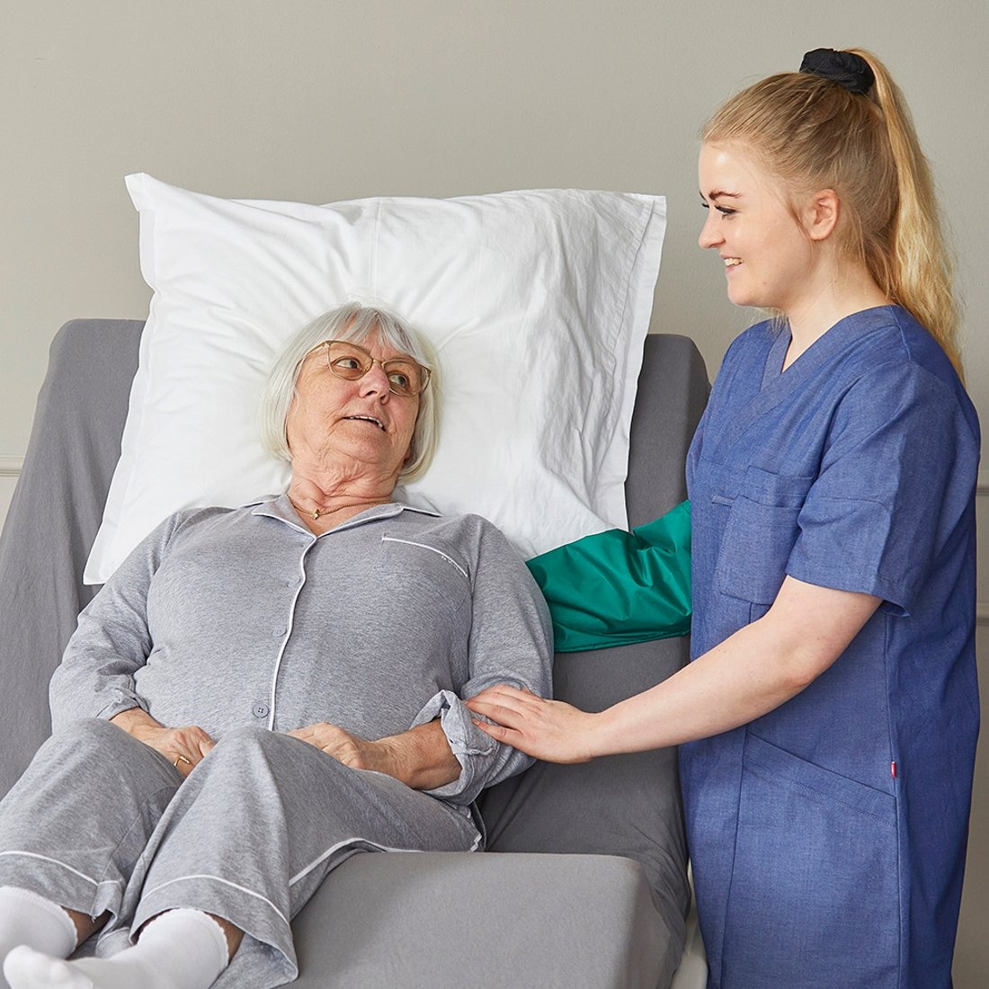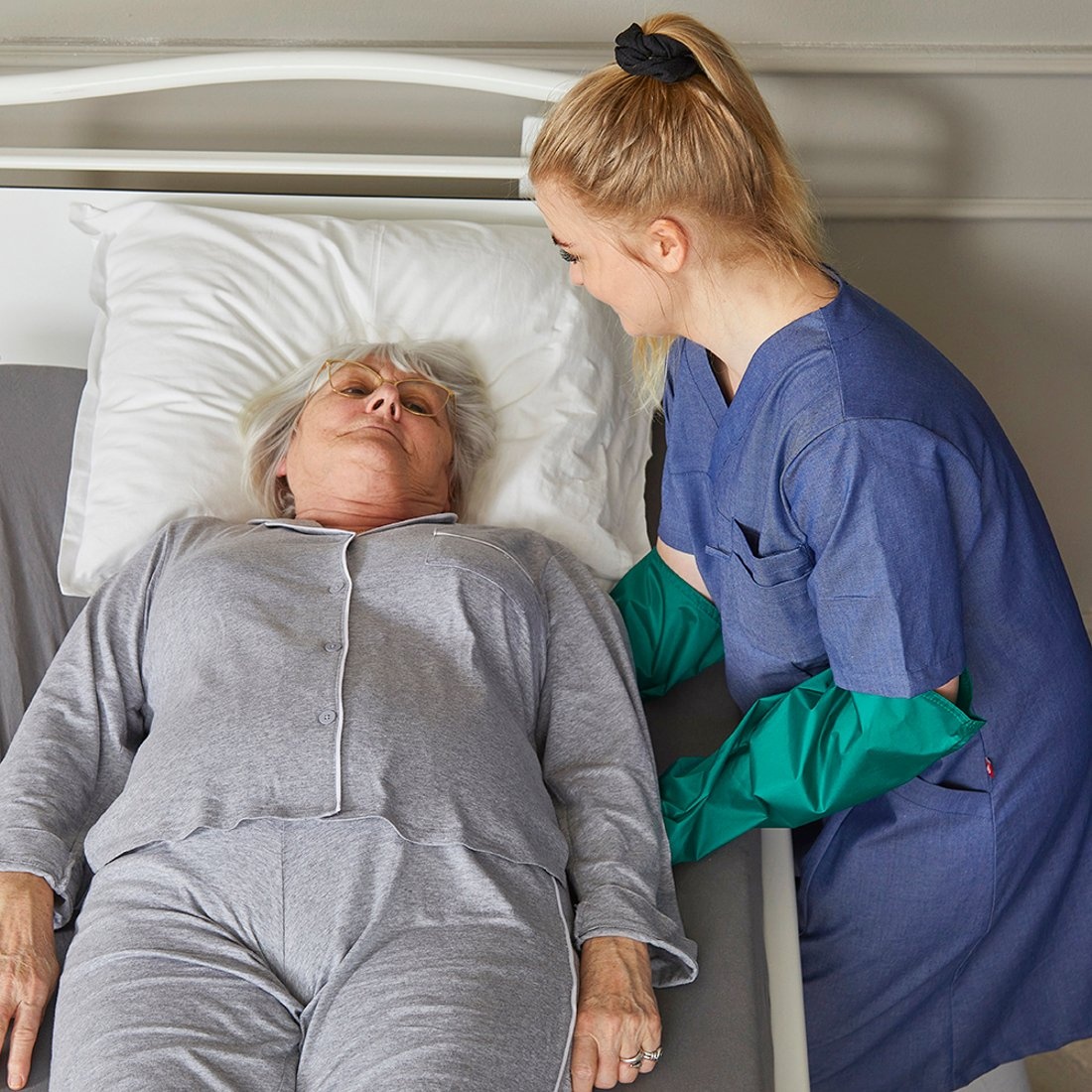 Le gant Multiglide peut être utilisé dans de nombreuses situations différentes pour positionner quelqu'un. Les gants permettent de placer facilement les mains entre le client et le matelas ou l’oreiller. Les petits ajustements de la position allongée, le déplacement et le serrage des draps sont des activités quotidiennes pour lesquelles les gants Multiglide sont particulièrement utiles.
