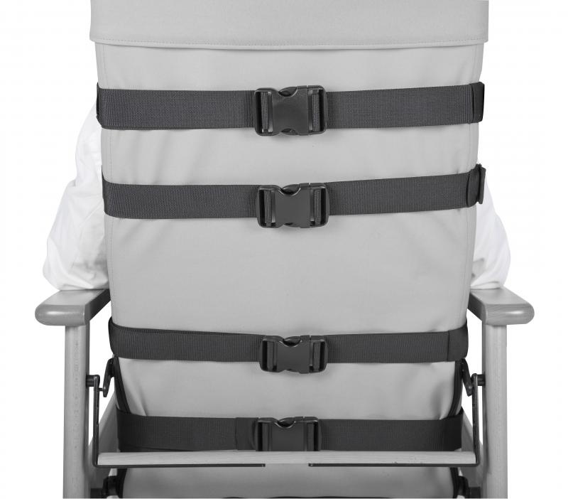 - Fournit un soutien autour du torse et sur les épaules du patient.