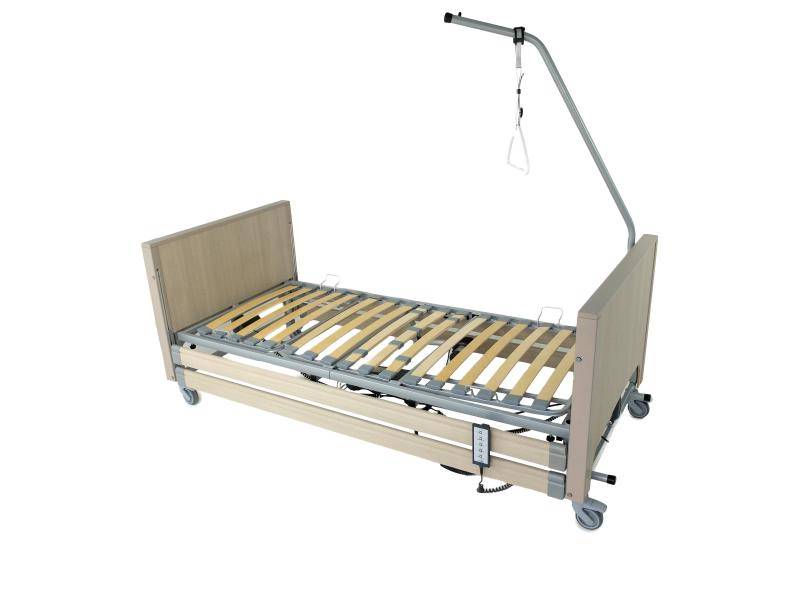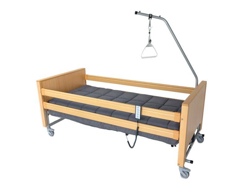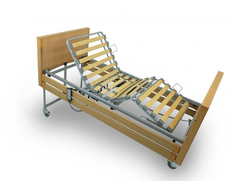 LIT ÉLECTRIQUE RÉGLABLE EN HAUTEUR "CLASSIC", 90 X 200 CM, COULEUR HÊTRE - 4 ROUES Ø 100 MM AVEC FREINS