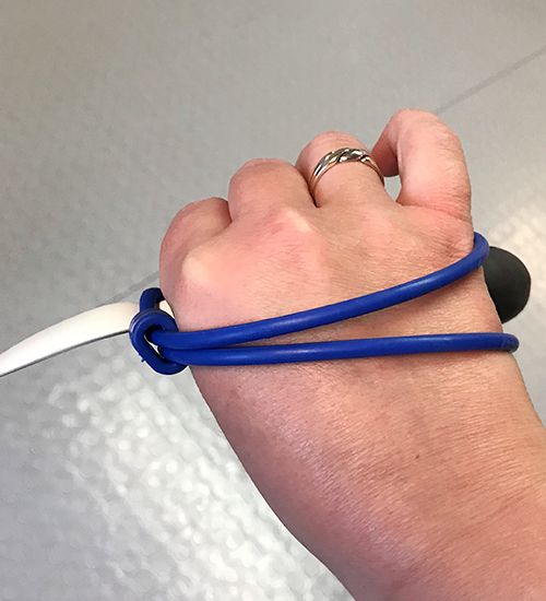 Sangle pour fixer des couverts ou des ustensiles d'écriture à la main.