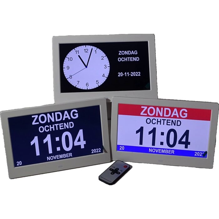 - Paramètres de langue : L'horloge peut facilement être réglée en plusieurs langues, afin que tout le monde dans la maison, des plus jeunes aux plus âgés, puisse lire l'heure et la date dans sa langue préférée. Cela le rend idéal pour les foyers internationaux ou les environnements multilingues. 8 langues différentes (néerlandais, anglais, allemand, français, italien, espagnol, polonais, portugais, suédois)