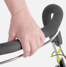 La poignée souple et large du déambulateur Let's Dream vous permet de freiner d'une seule main. En poussant le support de frein vers le bas, vous réglez le déambulateur sur un frein de stationnement afin qu'il reste en sécurité et ne puisse pas rouler. Tout cela fait du Let's Dream un déambulateur d'intérieur très convivial.