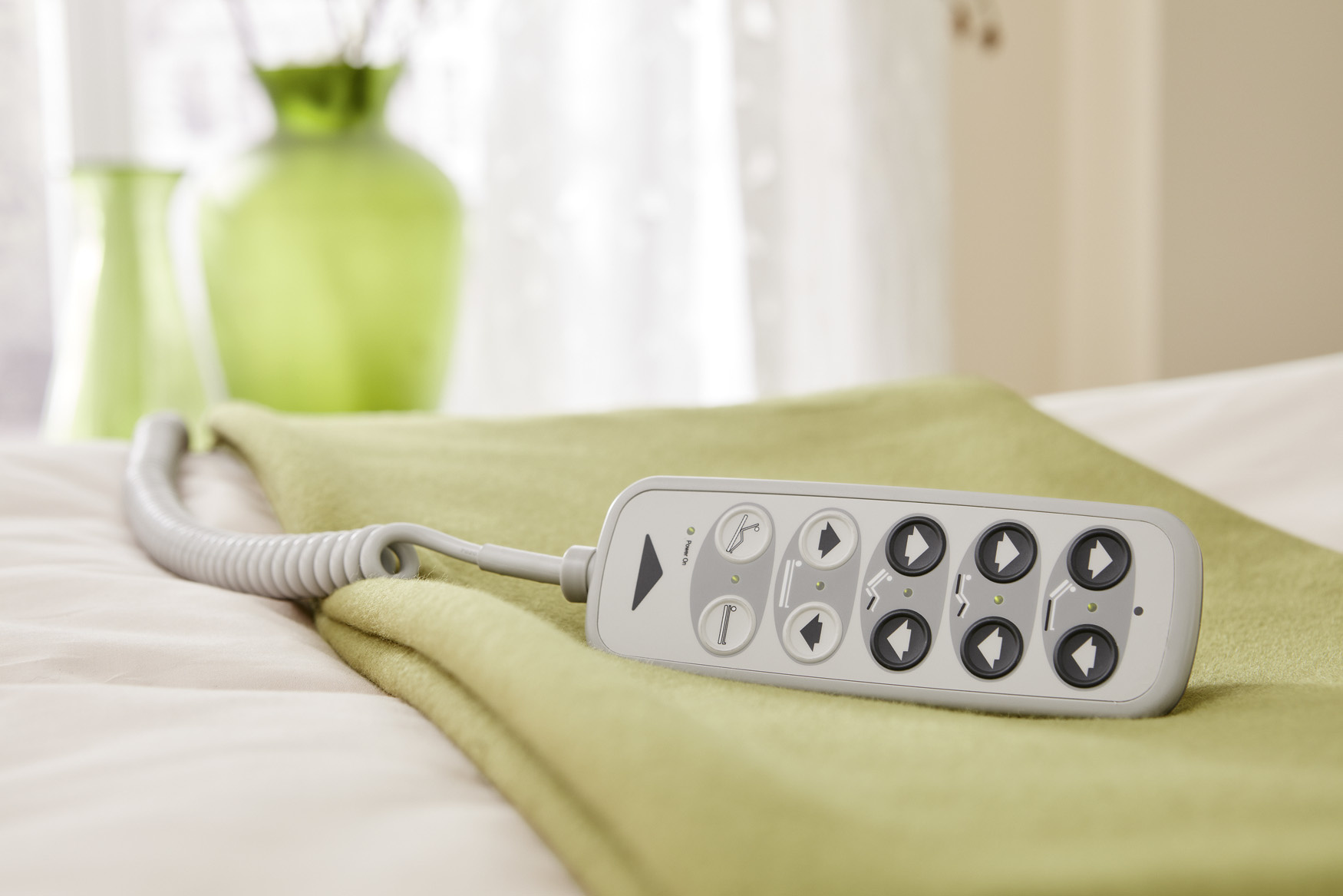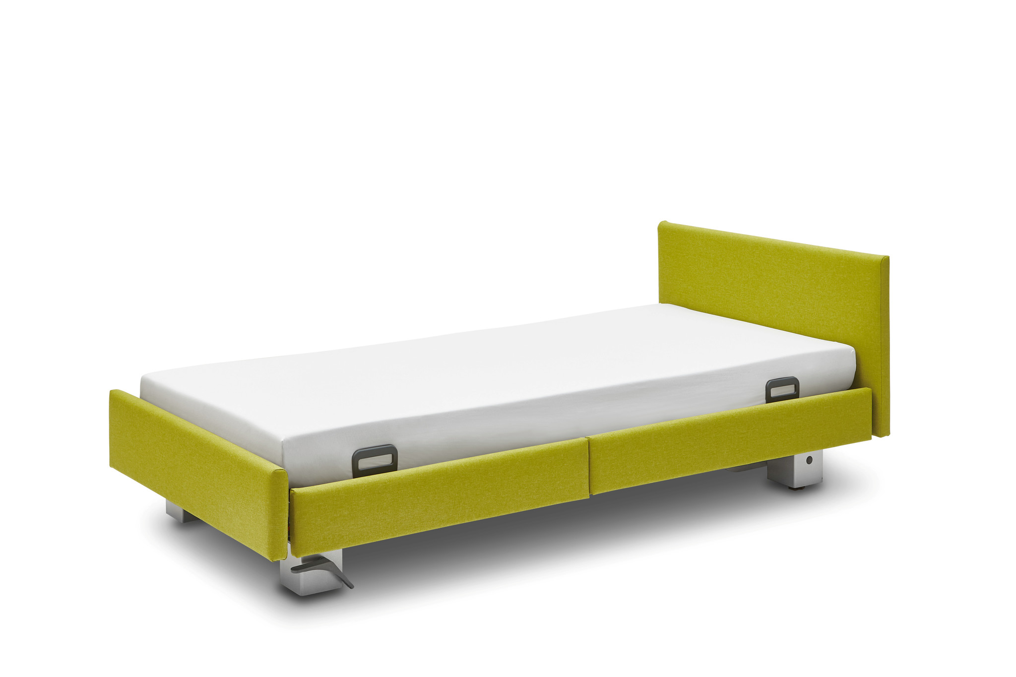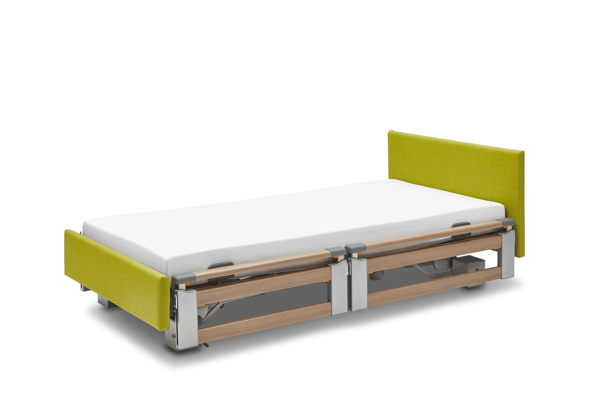Le Regia est un lit surbaissé qui protège les résidents des chutes dangereuses avec une hauteur de surface de couchage de seulement 26 cm . À la position la plus haute de 80 cm, les infirmières peuvent travailler confortablement. Lors du réglage, le lit insère automatiquement une butée pratique à la hauteur d'entrée et de sortie pratique de 38 cm.