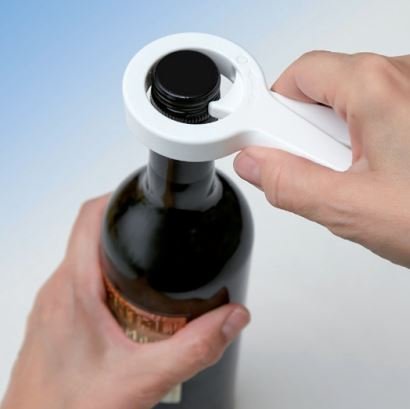 Ouvre-bouteille en plastique qui fonctionne comme une pince. Le Cap-Off facilite l’ouverture des bouchons à vis en plastique et en métal, même pour les personnes ayant les poignets faibles et douloureux. Fabriqué en plastique POM, 3 fois plus résistant que le PP. Pour bouchons à vis jusqu'à 4 cm de diamètre.