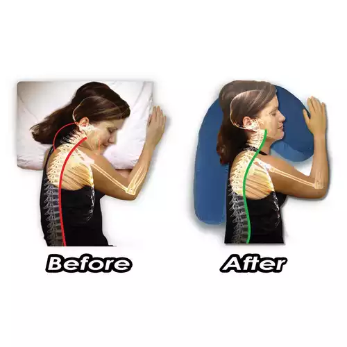 Cet oreiller est spécialement conçu pour les personnes qui dorment sur le côté et a un design ergonomique avec un évidement pour l' oreille . L'oreiller offre un bonsoutien pour la tête, le cou et les épaules.