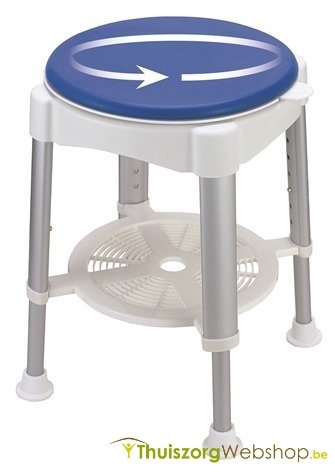 Tabouret de douche en aluminium avec siège rotatif en plastique, idéal pour les personnes à mobilité réduite. Il y a un espace de rangement pratique sous le siège.