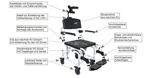 - propre poids: 12.90 kg - MDSTI: La chaise de toilette et de douche peut être inclinée