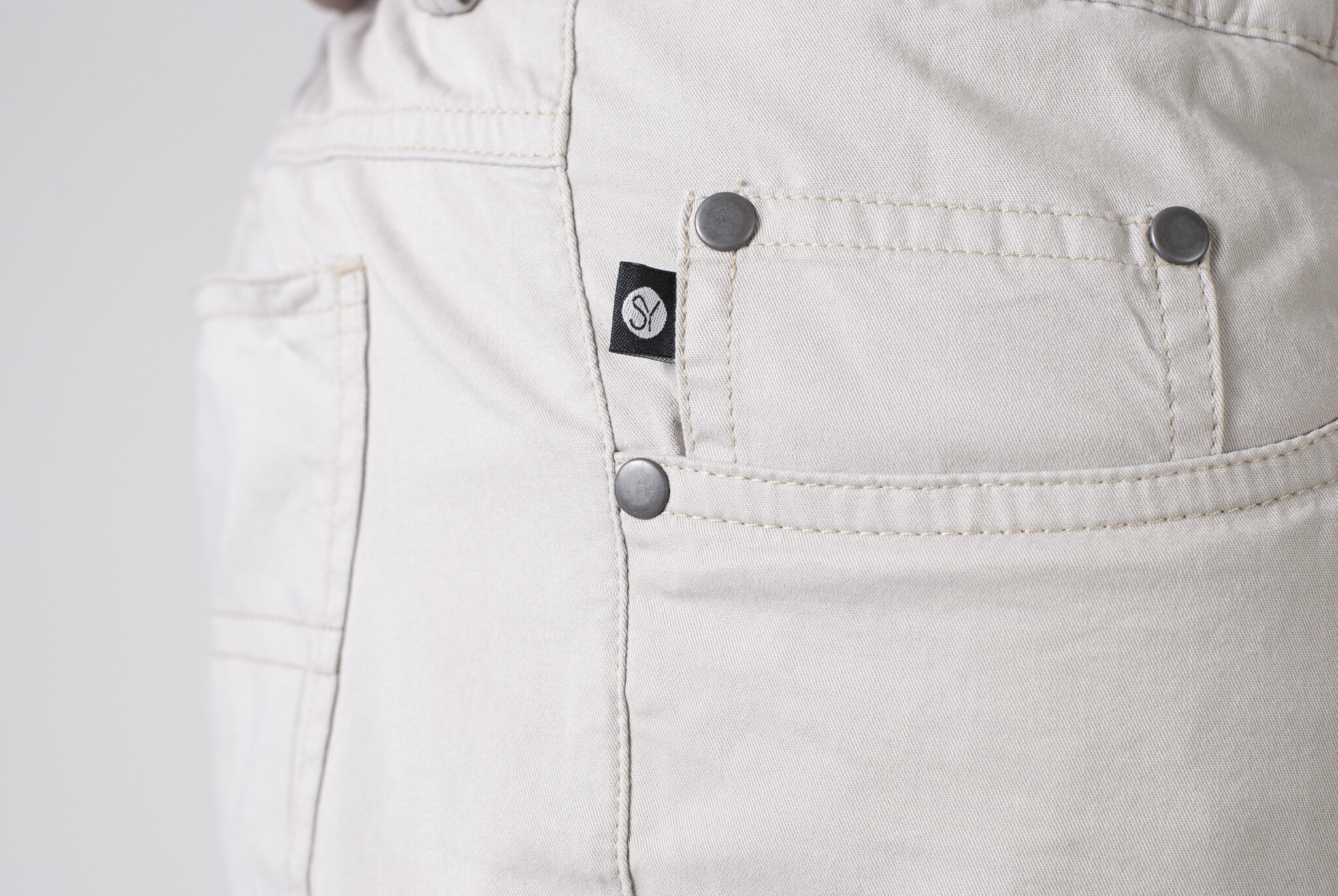 - 5 pockets: 2 voorzakken met klein zakje, twee achterzakken