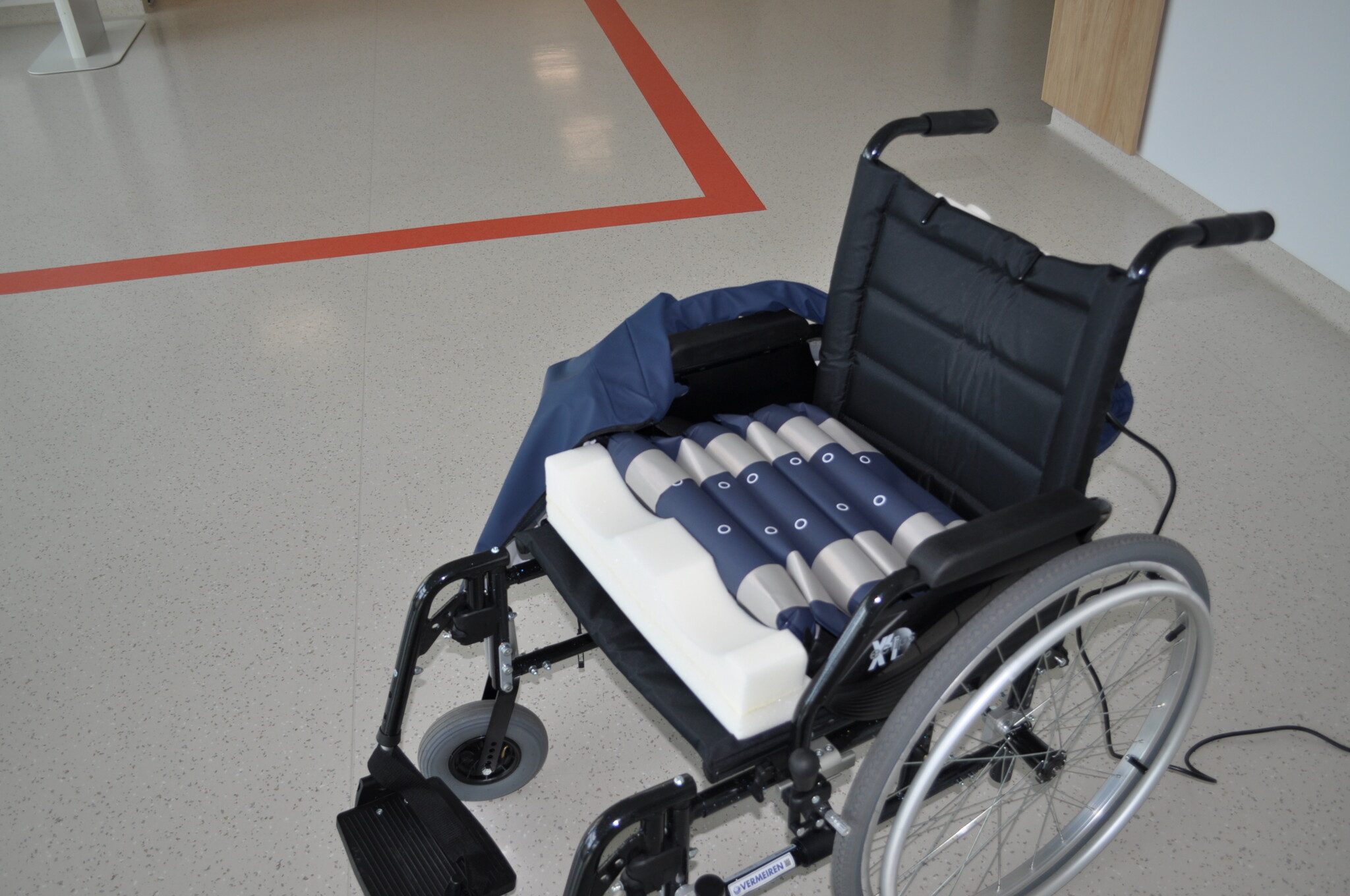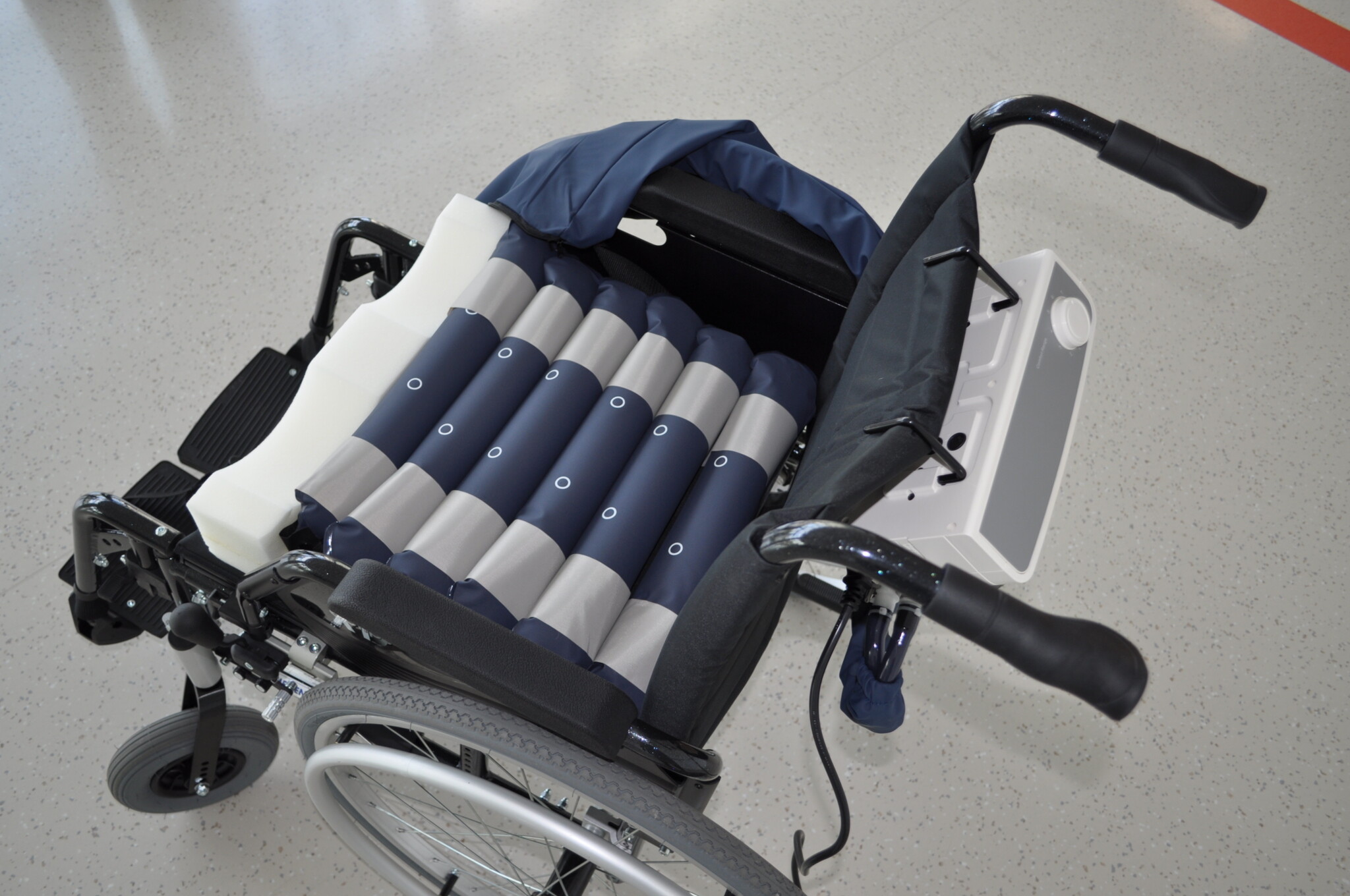 Zitkussen met variabele drukkamers, diameter 5 cm. De kamers zijn ingebed in een basis van viscoseschuim. Aanbevolen voor decubitus van graad I tot en met IV. Wordt geleverd met een luchtpomp.