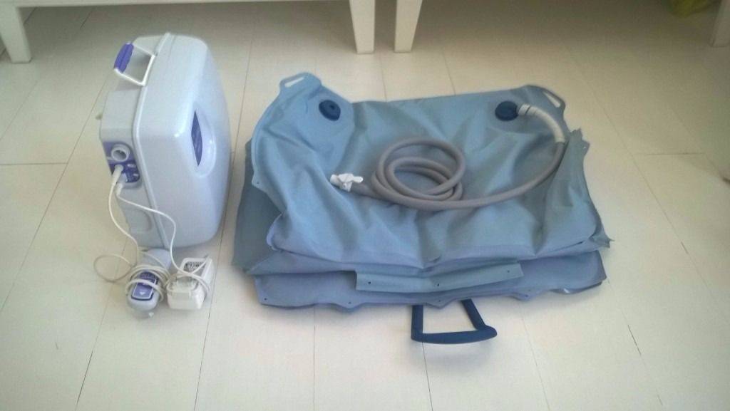 Zeer tevreden , goed ondergedompeld, wordt gebruik bij val, schuif onder de persoon en opblazen , probleem opgelost, intalken bij wegbrengen. Gebruik sinds 2010!!! Probleem : nu batterijen , moet in stopcontactblijven.