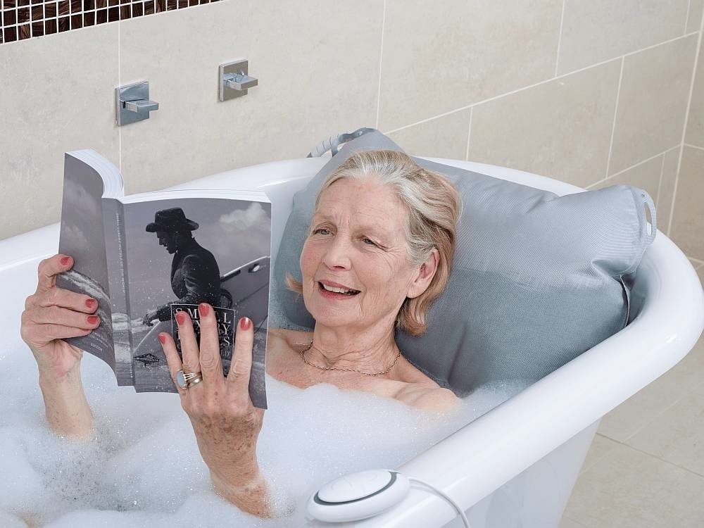 Badlift gebaseerd op een stevig kussen dat met een pomp opgeblazen wordt.Men zakt zachtjes naar beneden, onderaan heeft men de keuze om tot bijna op de bodem te zakken of om nog een beetje lucht in het kussen te laten voor meer comfort. Bathing Cushion hoeft niet bevestigd te worden en kan vlot in en uit het bad genomen worden om het bad vrij te maken voor een andere gebruiker.