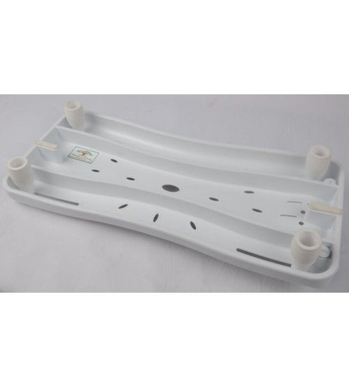 Badplank in lichtgewicht kunststof met stevige geperforeerde zitting. De bijgeleverde handgreep is zo gevormd dat ze vrij is van de muur. Pootjes instelbaar naargelang binnenbreedte van je bad.