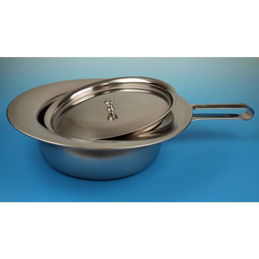 Klassieke bedpan met afsluitdeksel. Ronde vorm.