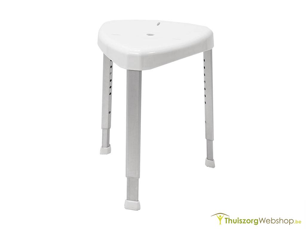 Een driehoekige douchestoel kan in een hoek van een kleine douche geplaatst worden. Hij is geschikt voor personen met een beperkt evenwicht of die onvoldoende lang kunnen rechtstaan. Het is aan te raden ook een steunstang te plaatsen om het rechtstaan te vergemakkelijken.