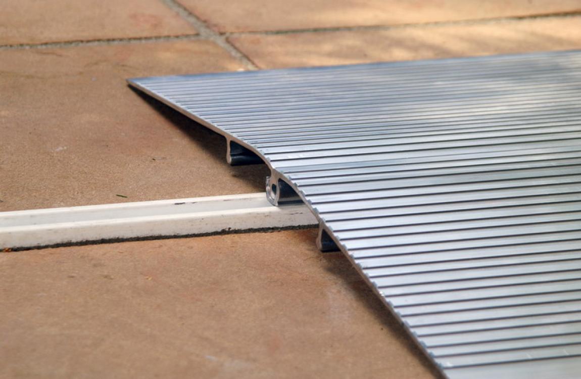 Een dorpelbrug zorg ervoor dat er met een rollator of een rolstoel vlot over of op drempels kan gereden worden.