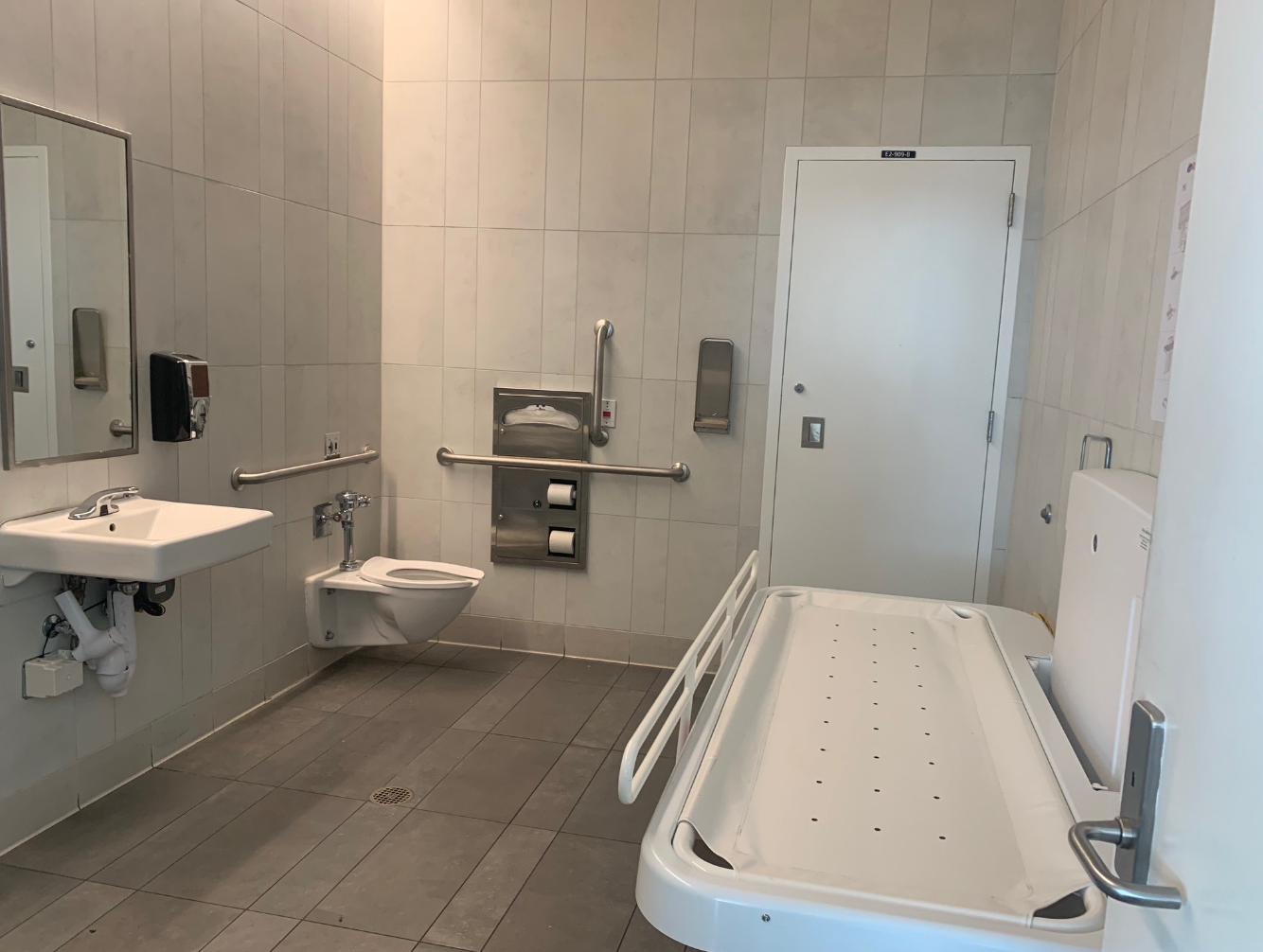 Een wateropvang met geïntegreerde waterafvoer voorkomt dat er water op de verzorger of de vloer kan spatten. De flexibele slang die is bevestigd aan de in het midden gemonteerde afvoer van de wateropvang, kan worden aangesloten op een uitlaat in de vloer of op de muur.