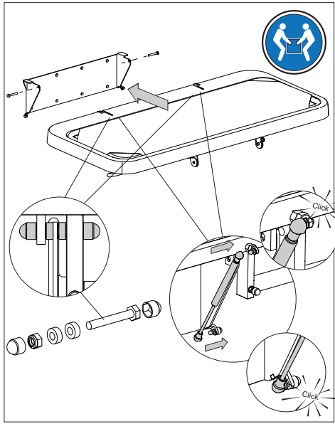 Wanneer de tafel is geladen met 175 kg, ondersteunt elke montagebout 52 kg