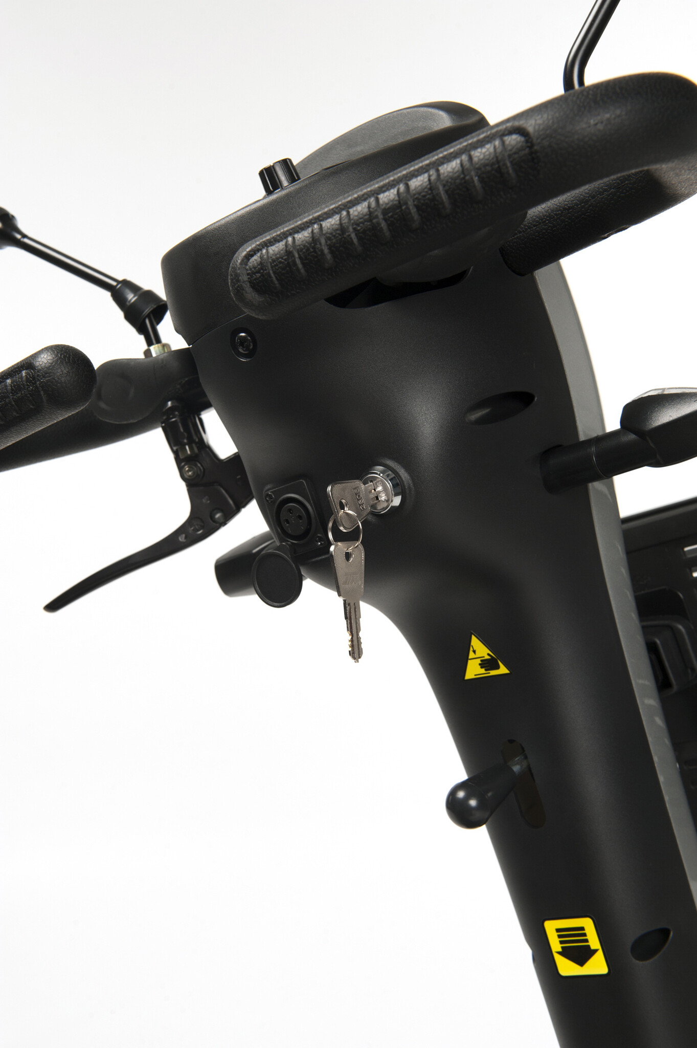 De Eris is een compacte scooter voor binnen- en buitengebruik. Het is de ideale scooter voor in kleinere ruimtes zoals appartementen en gangen. Dit luxueuze voertuig heeft twee uiterst comfortabele stoelen die naar wens kunnen worden aangepast. Om uw veiligheid te garanderen, beschikt deze binnen- en buitenscooter ook over veiligheidsgordels en een soepele vering.