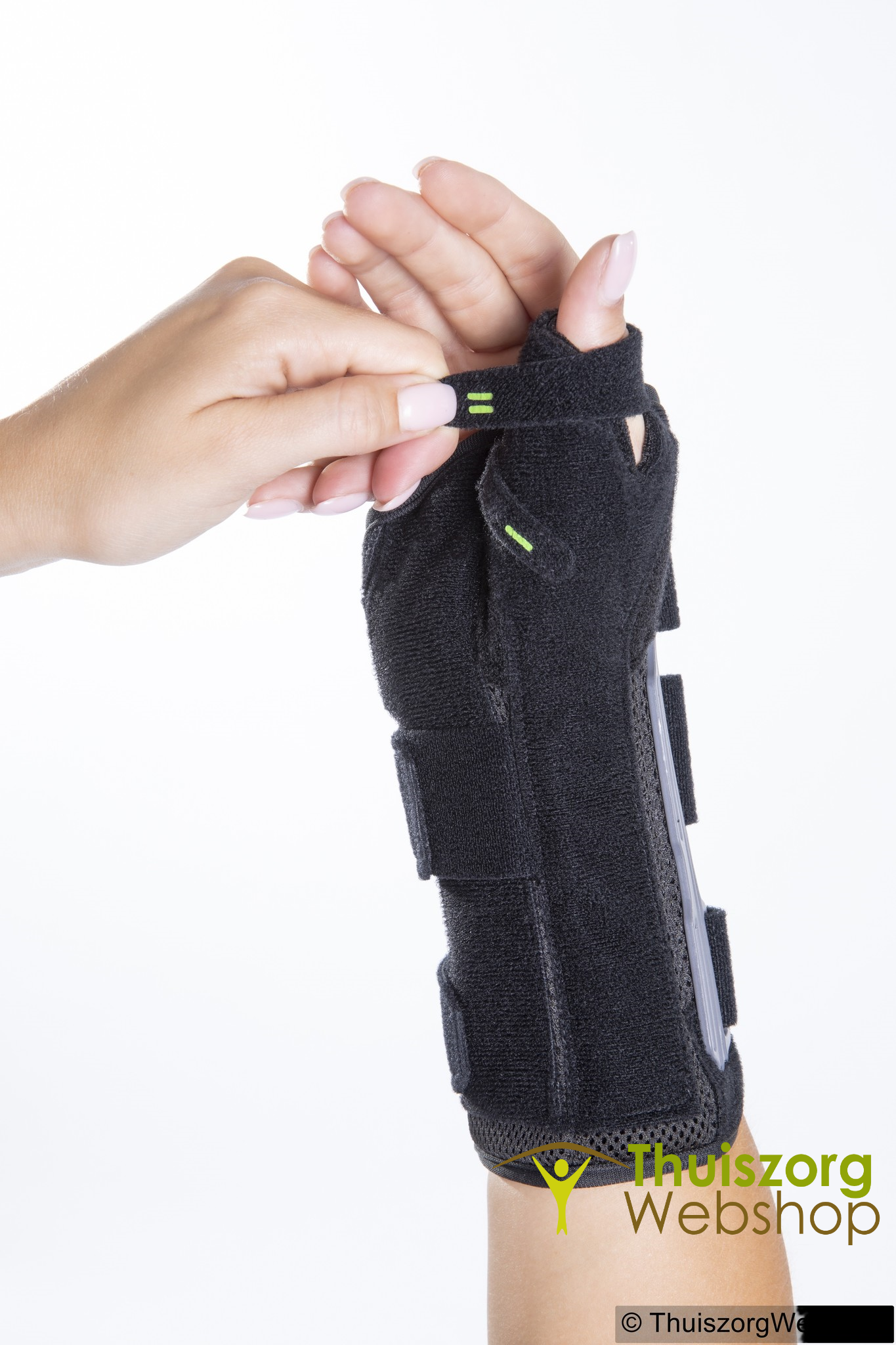 De comfortabele, ruime duimopening en een anatomisch gevormde palmaire steun met duimmuisuitsparing, zorgt voor een optimale hand- en vingerfunctie.