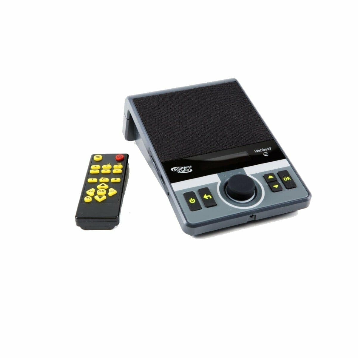 De Webbox 3 is een klein apparaatje waarmee u via internet heel veel actuele informatie en lectuur kunt beluisteren. Het kastje heeft maar een paar knoppen en alle aanwijzingen worden voor u uitgesproken. Daardoor is het helemaal op de tast en op het gehoor te bedienen. Dit maakt het tot een innovatief en handig hulpmiddel voor mensen met een visuele beperking en/of ouderen zonder computervaardigheden. Voor de Webbox3 is wél een internetverbinding maar géén computer nodig.
