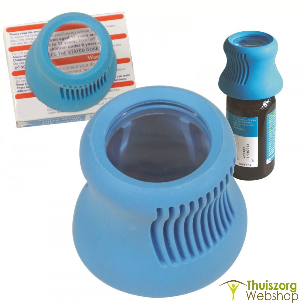 Deze handige opener voor pillenflesjes / medicijnenflessen is ideaal voor gebruikers met een zwakke grip of artritis. De opener is zowel aan de binnenkant als aan de buitenkant geribbeld voor superieure grip en heeft een 4x vergrootglas aan de bovenkant om de kleine lettertjes op labels te lezen. De opener is klein genoeg om in een tas te passen, zodat hij ook buitenshuis kan worden gebruikt.