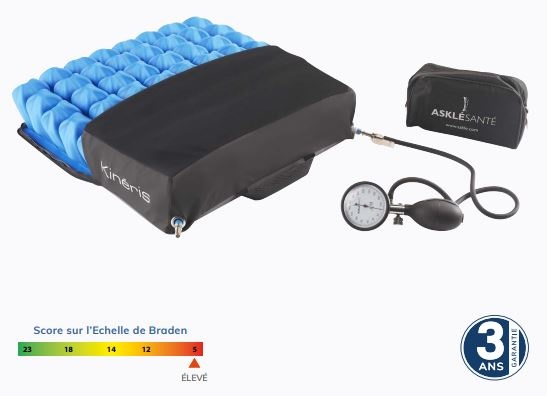 Hulpmiddel ter voorkoming van decubitus voor patiënten met een ZEER HOOG RISICO. Tussen 8 en 10 uur per dag aan de rolstoel gebonden.
